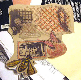 This image contains both stamped and transferred images (Toner-based copies and a 1976 newspaper) augmented with magic markers... there did not seem to be any clarity or adhesion issues with layering transfer images.